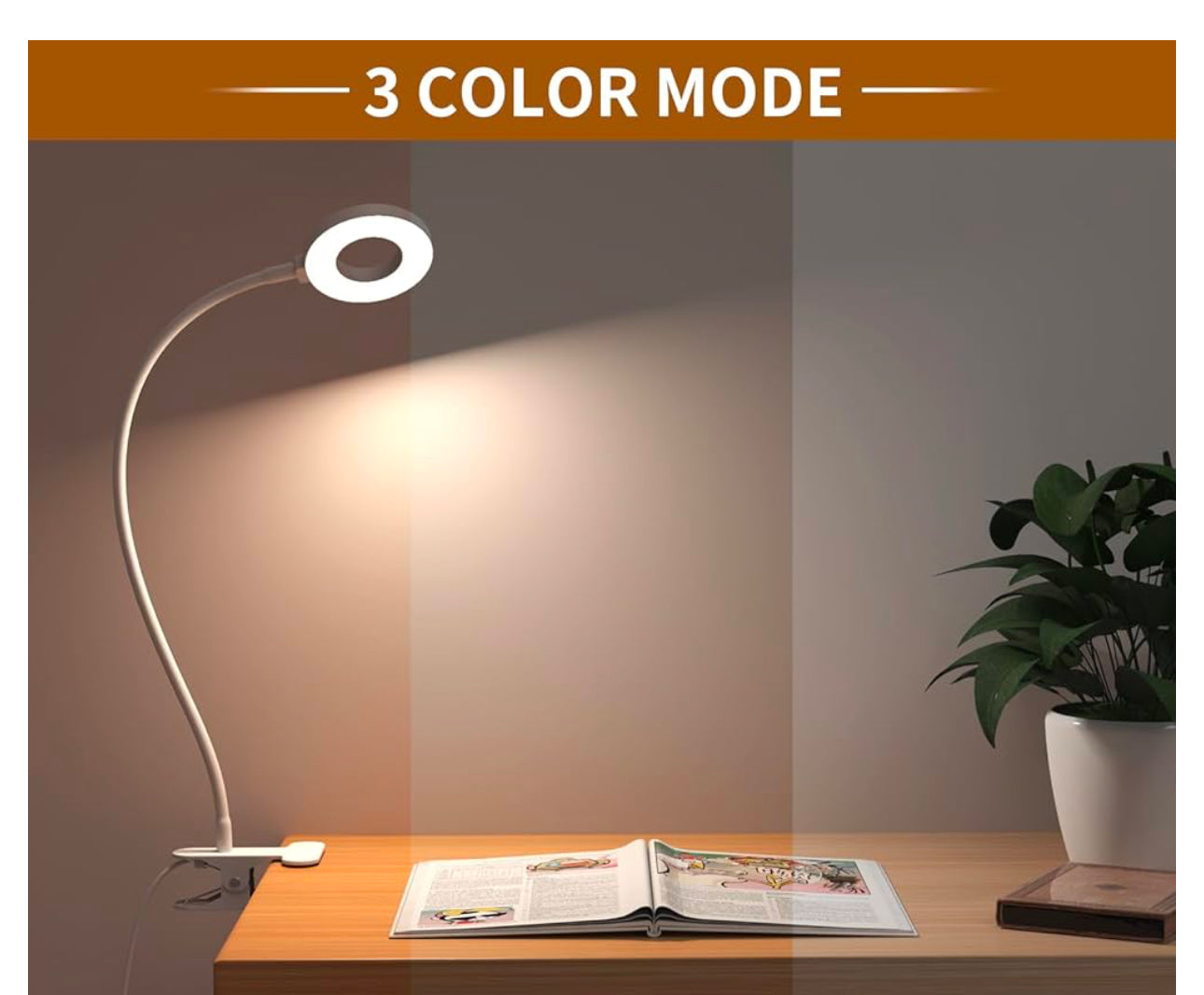 • Adjustable Clip: A sturdy clip base allows secure attachment to desks, tables, headboards, or shelves.